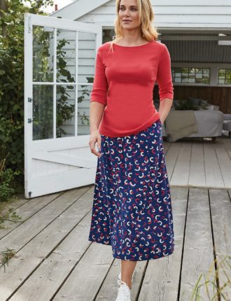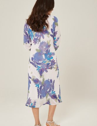 £64.00A gorgeous midi dress in a elegant abstract floral print that is a real head turner. Cut from soft and comfy cotton slub jersey, Becki dress is an Adini favourite with a notch neckline, long sleeves and shapely princess seams for an ultra-flattering silhouette. -